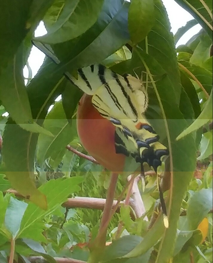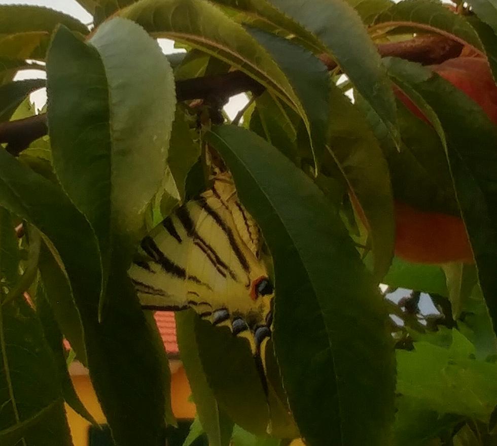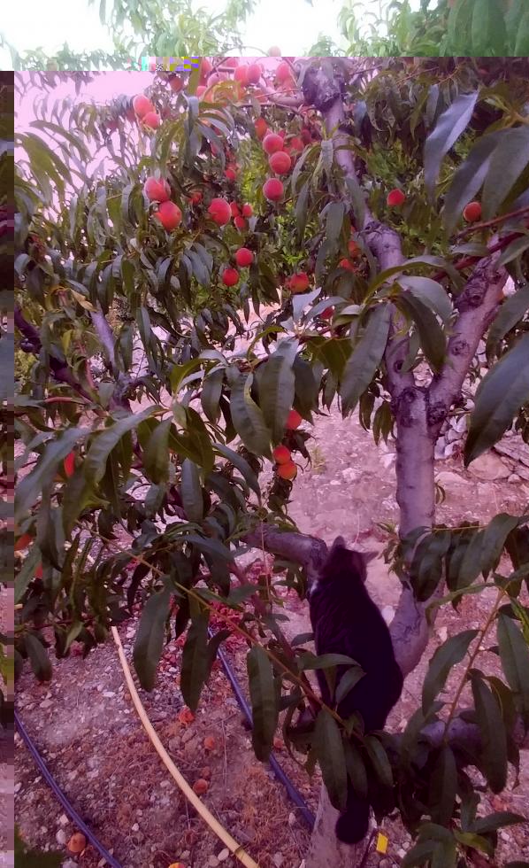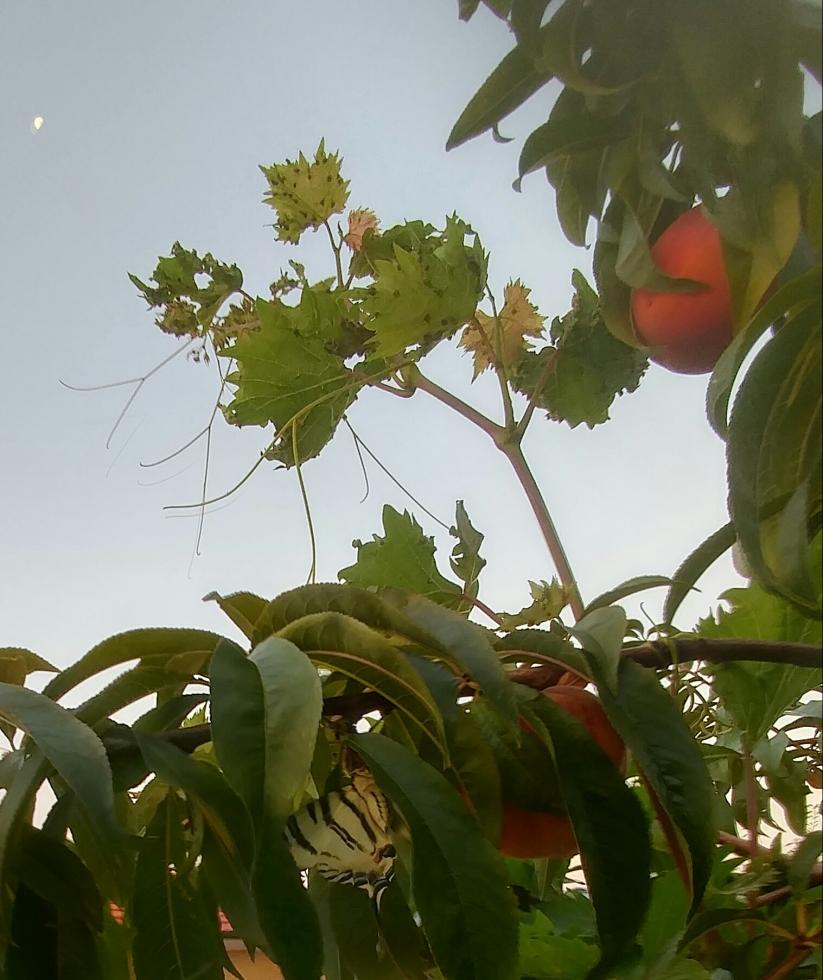 - sul pesco la gatta si struscia sulla corteccia e la farfalla si prende la tintarella di luna piccolina in alto a sinistra,