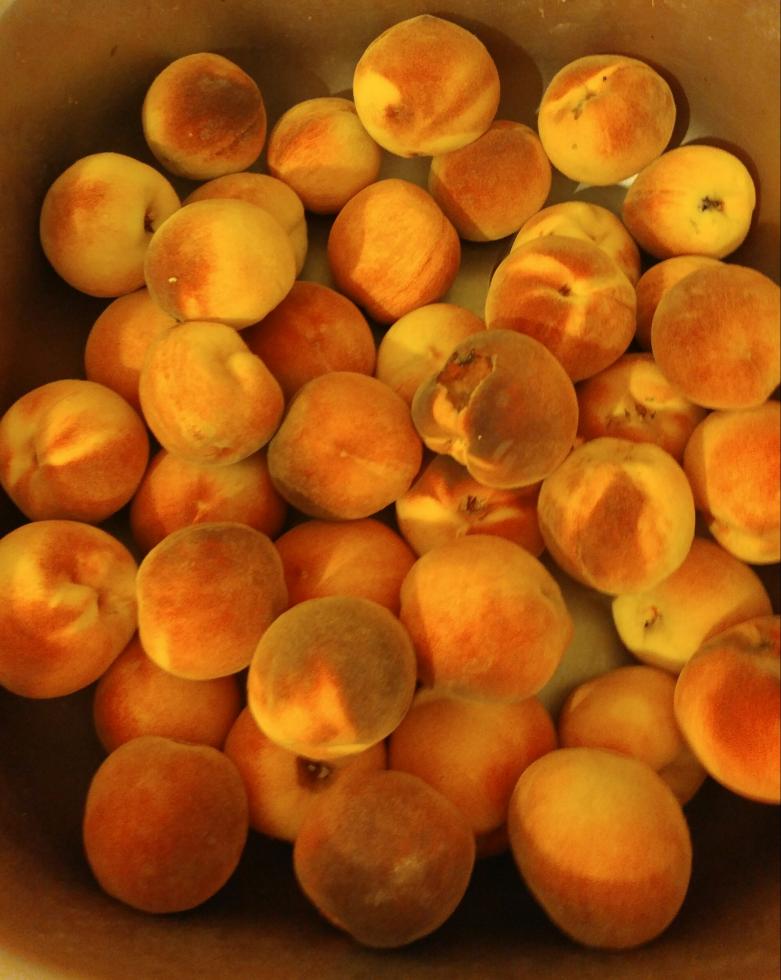 - alcune pesche raccolte hanno davvero forme bizzarre ma sono buone e succose in parte già surgelate per l'inverno.