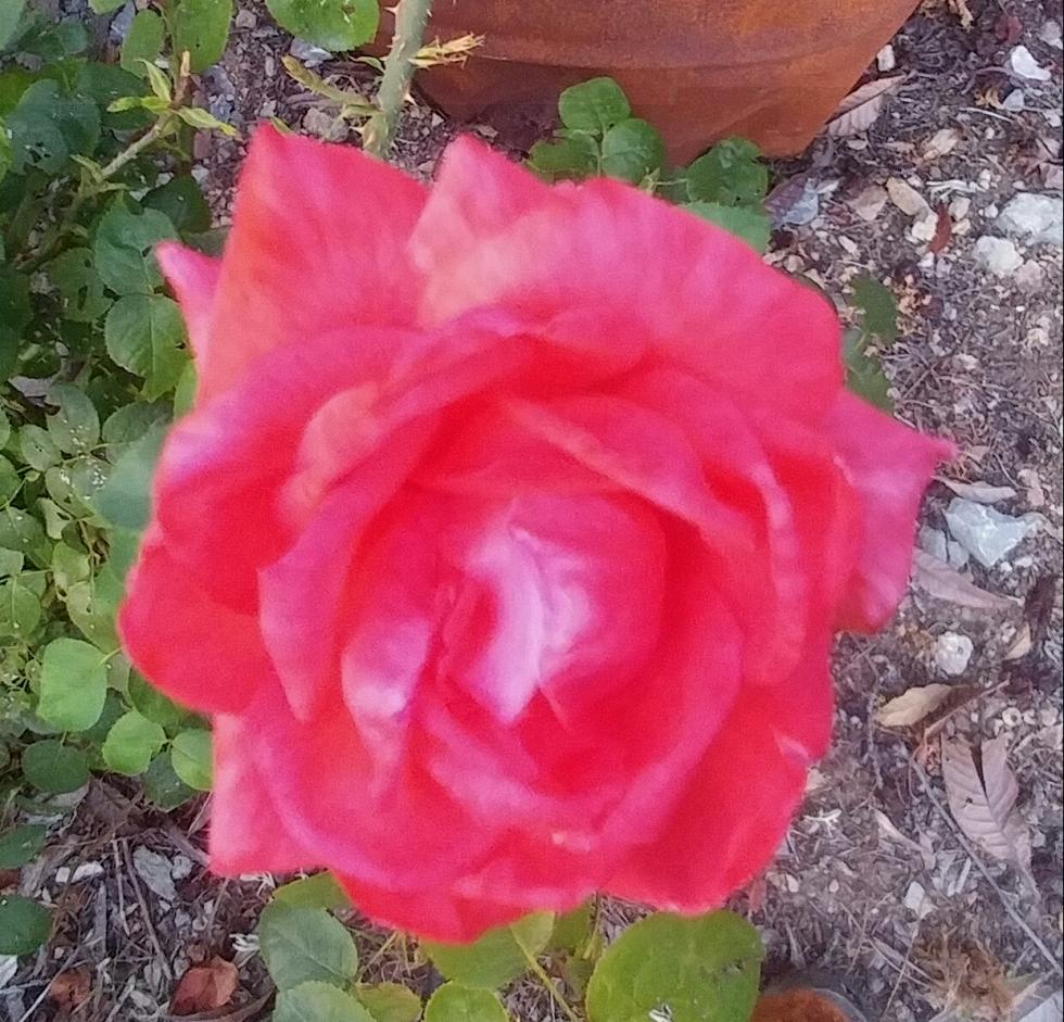 Una bella rosa che ravviva il terreno con il suo colore e profumo.