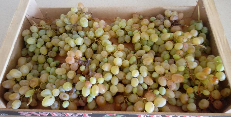 Oggi cassetta di uva bianca con acini grandi.