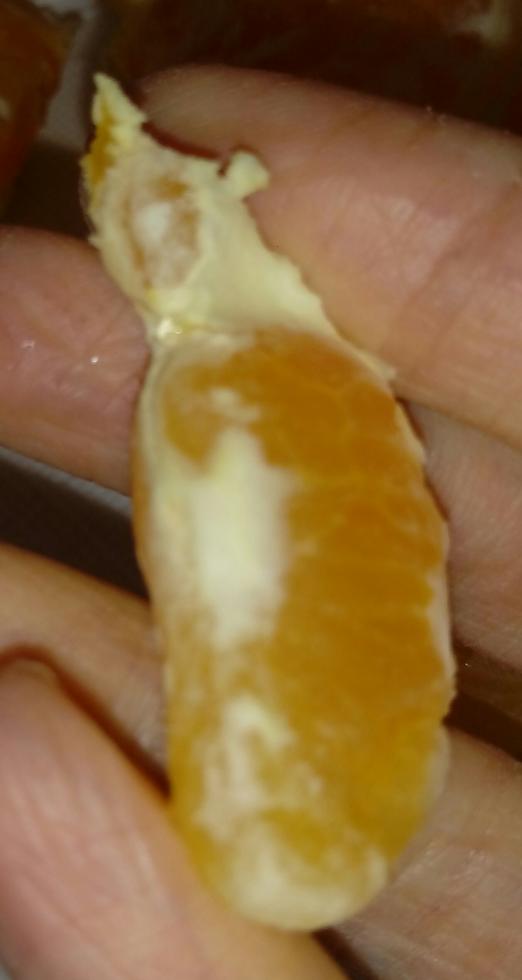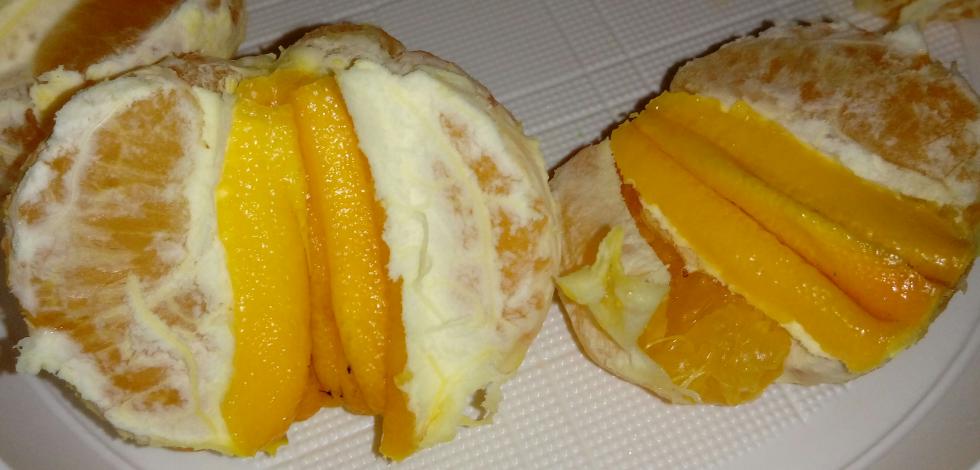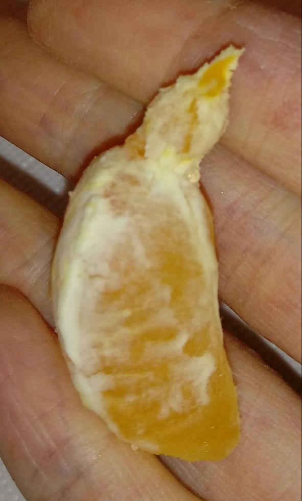 Da quando l'abbiamo messo questo albero tutti gli anni ha sempre prodotto frutti con buccia dentro. Per la spremuta non vanno bene perché l'amaro della buccia finisce nel succo quindi le mangio intere.