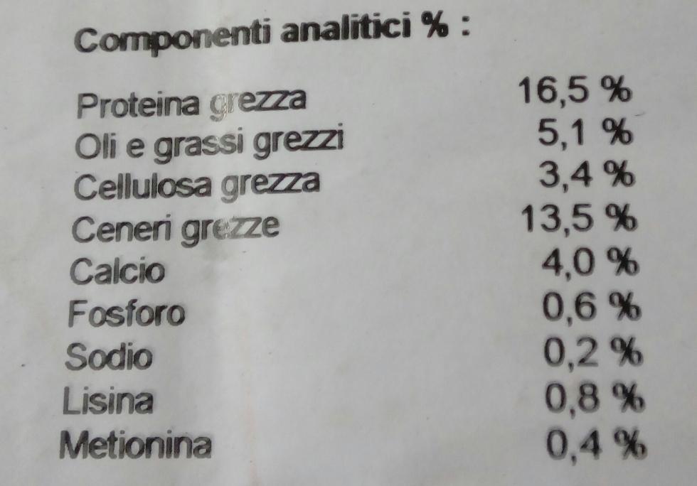 Per curiosità ho fotografato i valori nutrizionali del cibo per ovaiole venduto all'Agricola del mio paese. Che ne pensate?