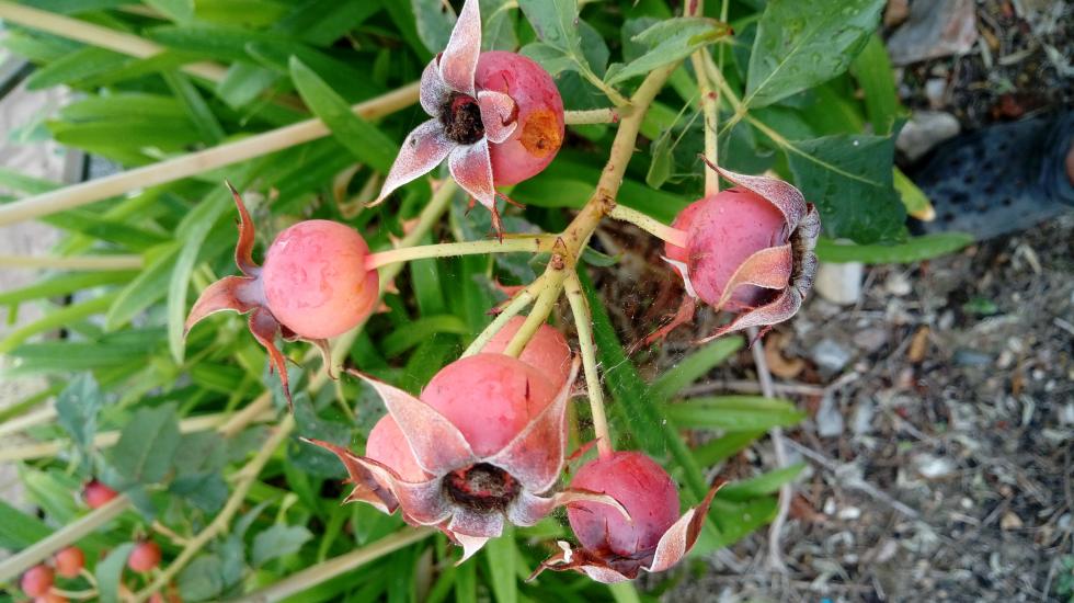 Il nespolo ha fatto i nuovi germogli per l'anno prossimo evviva questo mi aiuta contro la tristezza invernale. Ci sono ancora alcune zucche sulla pianta da lasciare maturare e poi raccogliere e conservare all'asciutto. Uno degli ultimi fiori di zucca che sembra dire: "Arrivederci estate!" di solito li mangio crudi in insalata. Con le bacche di rosa preparo un ottimo infuso lasciandole macerare in acqua bollente per diverse ore.