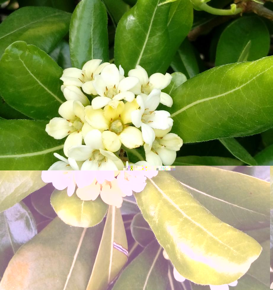 I fiori: clivia e pitosforo.