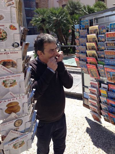 Carissimo Guglielmo, un ringraziamento speciale per la tua accoglienza e disponibilità nei quattro giorni, sono stati molto entusiasmanti, sopratutto per i nostri palati che, a causa anche del tempo non tanto favorevole, sono stati stimolati dai tantissimi cibi della terra siciliana, ed in particolare palermitana! Ad Elmo abbiamo così potuto consegnare in anteprima il numero 3 di TerrAmica, che comprende il suo interessantissimo articolo sulla zucchina centenaria (della quale siamo stati anche omaggiati di un seme!). Sono sicuro avrò modo di tornare presto in Sicilia, perchè ne vale sicuramente la pena! Ciao, Luca