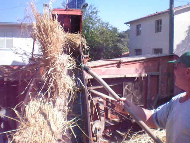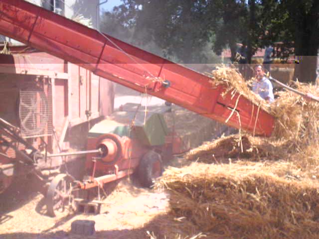 Io ho 17 anni, sicuramente non avrò l'esperienza e i ricordi che avranno molti di voi, ma per fortuna, ancora oggi, per un giorno all'anno posso dire: - ho imboccato i covoni di grano (da noi gregne) nella trebbia