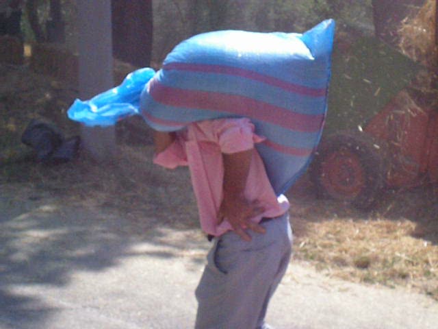 Facevamo due posizionamenti nel mio paese e uno nel paese vicino, ognuno portava i suoi carichi per la mietitura, tutta la famiglia era addetta alle operazioni.