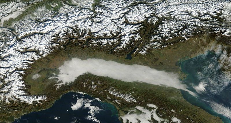 guardate bella questa foto, come si vede bene la nebbia di questi giorni al nord e Toscana.