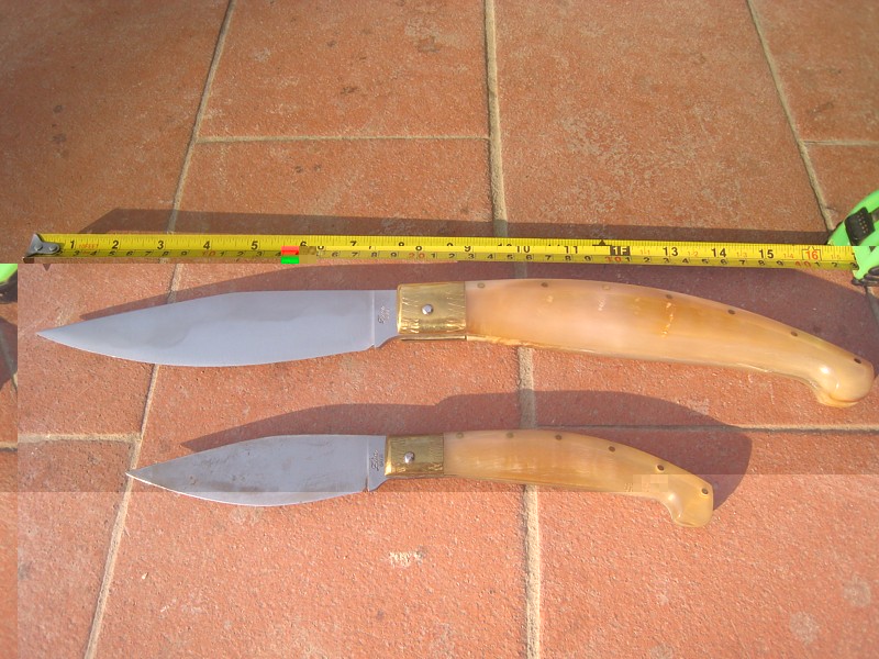 Il tuo pattada, Pedru non è un coltello, è un gioiello. Chi lo erediterà un giorno? Affascinante il coltello Mongolo e quello spagnolo, l'estremità dell'impugnatura ricorda anche lo zoccolo di un cavallo, anche il liccasapuni interessante, non sapevo di questa cosa del sapone. Vi mostro i coltelli sardi di un abile artigiano di Gavoi che ha lavorato tanti anni a Pattada, il primo è una sleppa di 17 cm con 8 cm di lama, uno spettacolo. mai come quello di Pedru. Allegato: