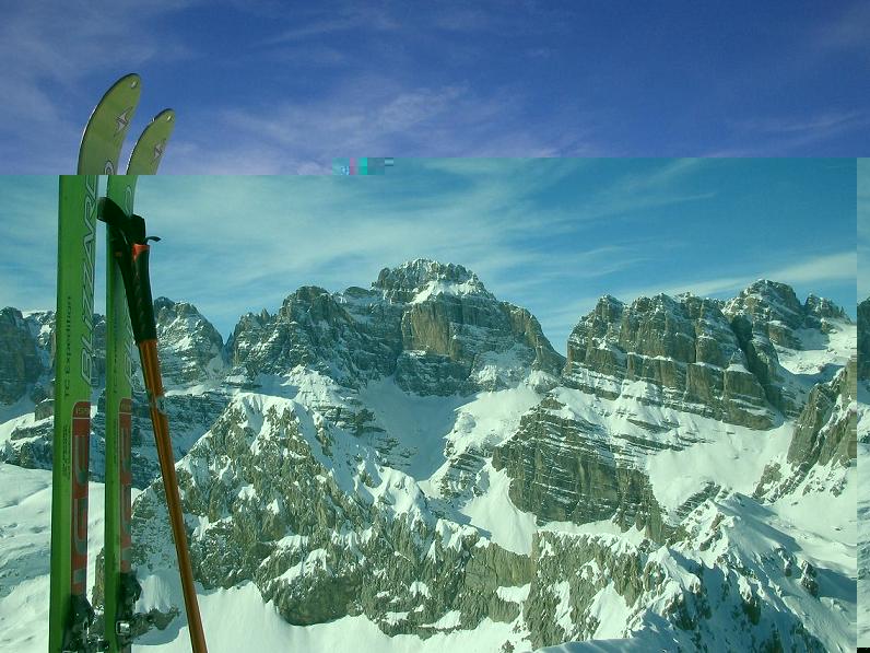 Salita al Piz Galin(Dolomiti di Brenta-TN) da Andalo, siamo partiti nelle vicinanze dell'abitato con un amico alpinista alla volta della cima con gli sci da alpinismo, siamo saliti dal versante sud-ovest dalla classica salita invernale. Siamo passati sul fianco del Croz dell'Altissimo e poi proseguito lungo il canalone antistante la cima ed infine lungo il pendio finale della cima(2442m).Giornata di sole stupenda con temperatura ottimale e assenza di vento.....ottimale!!!
