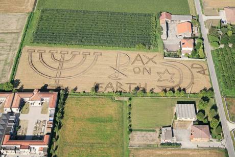 questo nn lo fatto io , sara' qualche pilra antisemita ,a primo colpo d'occhio sembra che al posto di pace x la terra, abbia scritto pace x le scoregge ( farth)