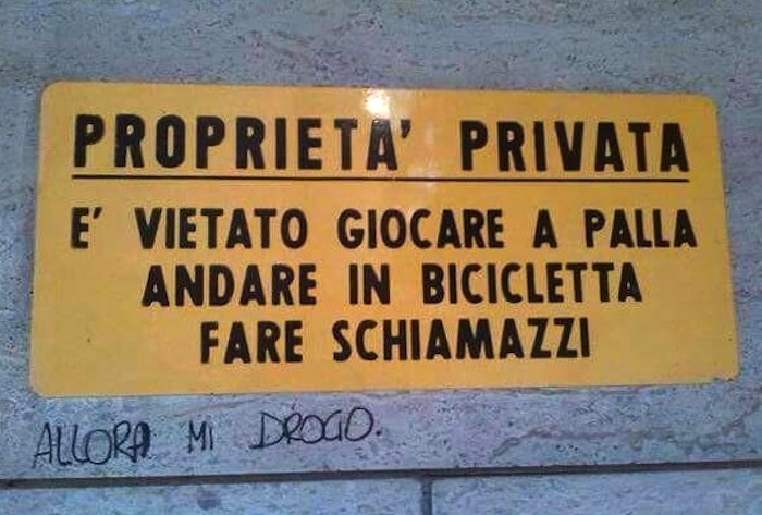 Ciao Libellula, la mia risposta si riferiva al fatto che chi mette un cartello simile è un cadavere.