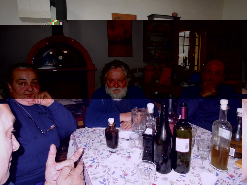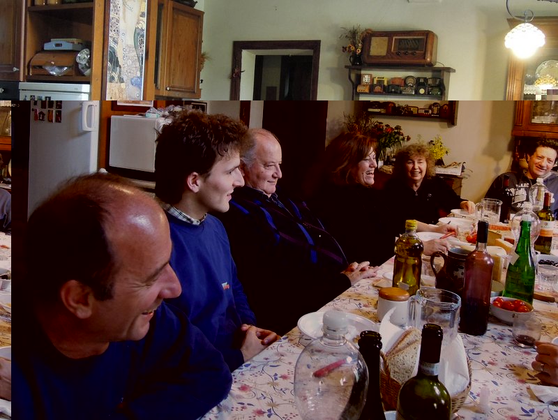Pranzo nella sala cucina su maxi tavolata ..... pasta al forno di Carla (quando hai tempo manda un mp a Dani con la ricetta ... è troppo buona!!!.... Ieri parla parla non ho fatto in tempo a scrivermela :lol: ), coniglio di quella magnifica cuoca mamma di Bruno(Gargamella) (rinnovo i complimenti tanto era ottimooooooo !!!!), daino o cerbiatto (poverino :o ) in umido, formaggi vari, torta di carote e mandorle, la panna cotta con le fragole, i cantucci col Vinsanto, caffè e liquori vari (bevuto vino e acqua pochina :lol: )....... La ns panza era piena piena ....