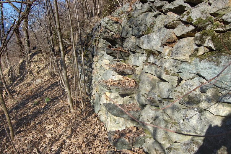 Per prima si cercavano tutti gli appoggi naturali, grossi massi, spuntoni o fianchi rocciosi di montagna, se questi si potevano collegare tra di loro e l'esposizione della terrazza risultava adeguata (est/ovest) la fondazione collegava gli elementi e mettendo le pietre migliori davanti, quelle peggiori dietro e le piccole al centro si alzava il muro con uno spessore di circa 60/80cm a seconda dell'altezza che si doveva raggiungere.