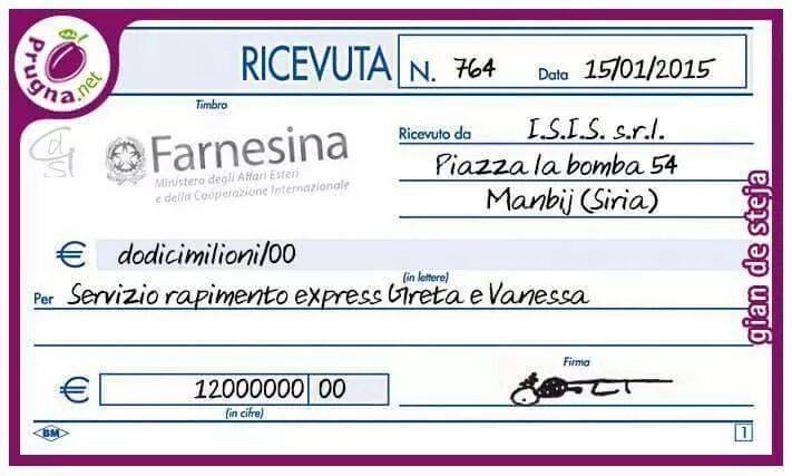 robert63 ha scritto: grintosauro ha scritto: anche fosse un caffe , ma perché in questo caso devono prende i soldi di tutti noi per pagare i 6 mesi di vacanze, a 2 che son andate di loro spontanea volontà , ammettendo anche ci averci dato dentro consenzienti , pure divertendosi. http://www.ilgiornale.it/news/politica/ ... 83856.html" target="_blank" target="_blank" target="_blank caso simile in austria di 2 ragazze di origine bosniaca , che son andate la , nel 2012 , sono ancora disperse ora... Approvo in toto ciò che dice Gianfranco ed aggiungo che come cittadini abbiamo tutto il diritto di sapere la verità su questa storia.Cosa erano veramente andate a fare in Siria queste due capricciose svampite,per azioni umanitarie o autonomamente? Allora io dico che lo stato farebbe bene a rivalersi a vita su di loro per recuperare ciò che ha speso. W l'itaglia. Non posso non essere d'accordo con entrambi, ma si sa: vorremmo vivere in Paese normale