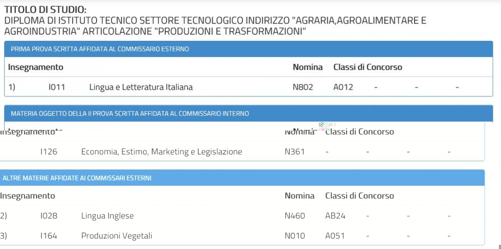 DIPLOMA DI ISTITUTO PROFESSIONALE SETTORE SERVIZI INDIRIZZO "SERVIZI PER L'AGRICOLTURA E LO SVILUPPO RURALE" PRIMA PROVA SCRITTA AFFIDATA AL COMMISSARIO ESTERNO 1) LINGUA E LETTERATURA ITALIANA MATERIA OGGETTO DELLA II PROVA SCRITTA AFFIDATA AL COMMISSARIO INTERNO - ECONOMIA AGRARIA E DELLO SVILUPPO TERRITORIALE ALTRE MATERIE AFFIDATE AI COMMISSARI ESTERNI 2) LINGUA INGLESE 3) VALORIZZ.ATTIVI.PRODUTTIVE LEGISL.DI SETTORE