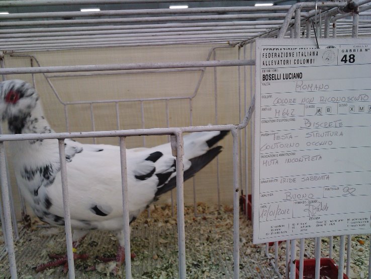 Ho ritrovato le foto in mezzo a quelle che avevo scartato,perché come vedi non è venuta bene. Il fiorentino si è maschio,per ora in assenza di femmine della sua razza si è accoppiato con una femmina di triganino pietrascura verghe gialle,se faranno delle uova probabilmente mi nascerà una specie di meticcio nero verghe rosse..