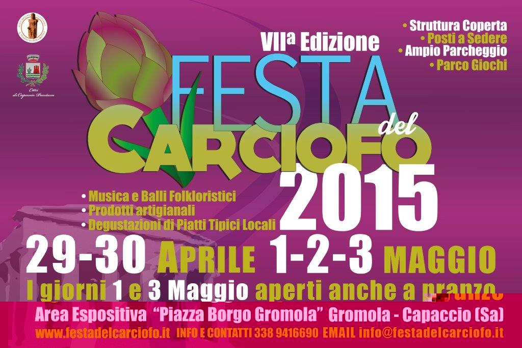Lunedi 27 Aprile 2015 alle ore 11:00 presso la Sala Erica Fraiese del comune di Capaccio-Paestum a Piazza Santini, si terrà la conferenza stampa della 7° edizione della Festa del Carciofo di Capaccio-Paestum, evento che si svolgerà dal 29 Aprile al 3 Maggio 2015 nel borgo di Gromola a Capaccio-Paestum. La manifestazione è organizzata dall’Associazione Culturale ‘Il Tempio di Hera Argiva’ con il supporto del Consorzio di tutela del Carciofo di Paestum IGP e della O.P. Terra Orti.