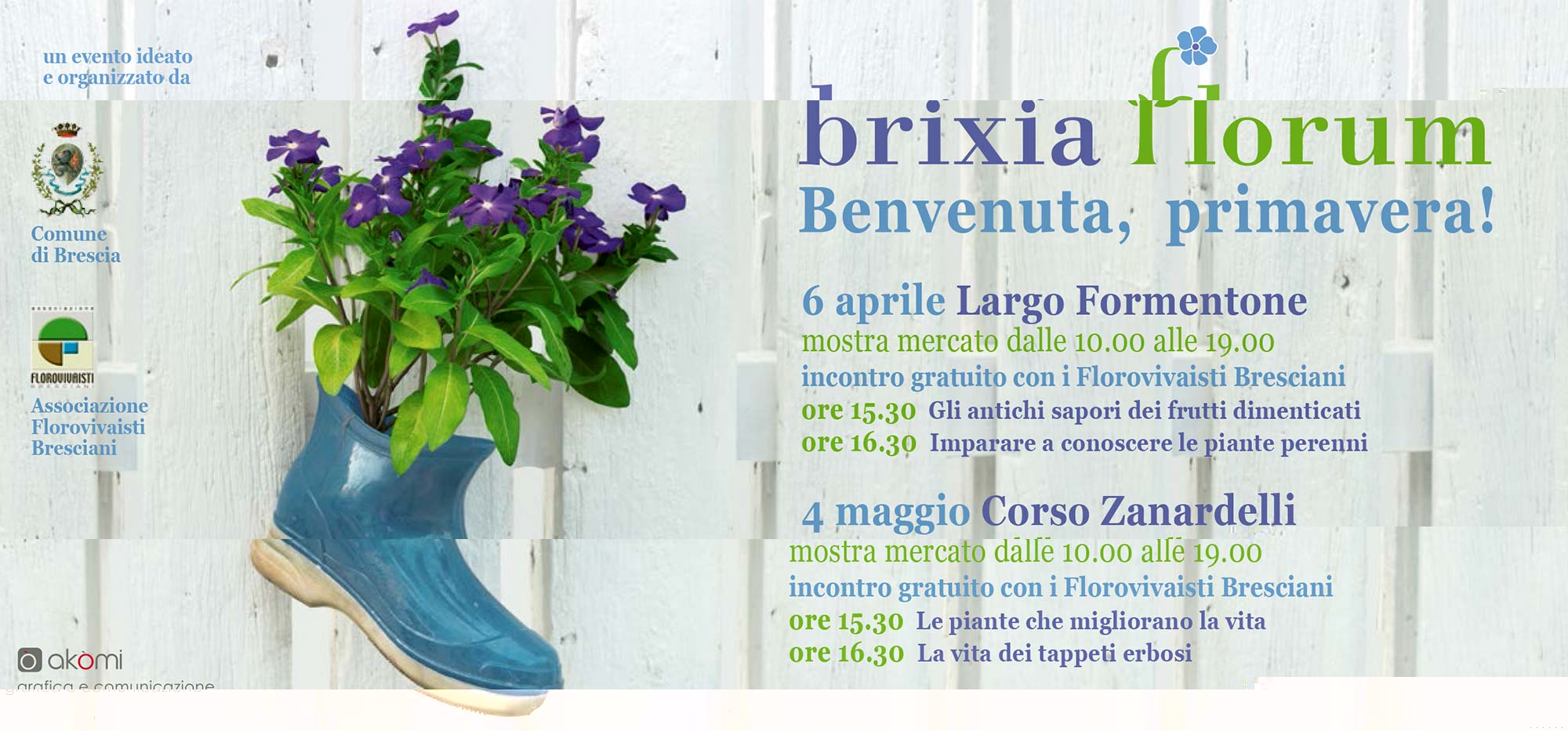 Appuntamento quindi per Domenica 4 Maggio in Corso Zanardelli, orario dalle 10,00 alle 19,00. Per informazioni potete contattare l’Associazione Florovivaisti Bresciani al numero +39 030 3534008 o via mail scrivendo a