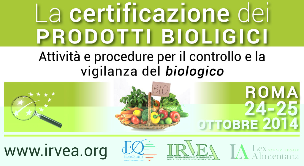 Controllo e vigilanza sui prodotti BIO. Attività, procedure, adempimenti e limiti tecnico-giuridico-operativi del personale ispettivo. A Roma il 24 e 25 ottobre, una “due giorni” interamente dedicata ad approfondimenti sulle problematiche afferenti il controllo e la vigilanza nelle aziende agroalimentari per la Certificazione dei Prodotti Biologici. Il corso è aperto a tutto il personale operativo e ispettivo degli Organismi di Controllo e Vigilanza sulle certificazioni dei vari prodotti di Qualità Regolamentata e, in qualità di relatori vedrà la partecipazione di magistrati, avvocati, agronomi, dirigenti, funzionari e ispettori dell’ICQRF- Ispettorato Centrale Qualità e Repressione Frodi.