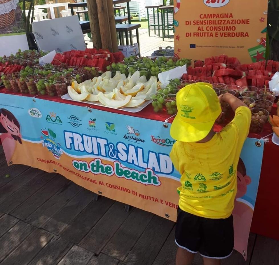 Al via da lunedì 20 luglio 2020 al Lido Girasole di Capaccio Paestum (SA) la seconda settimana di Fruit & Salad on the Beach, campagna di sensibilizzazione al consumo di frutta e verdura che si tiene da dieci anni sulle spiagge italiane.