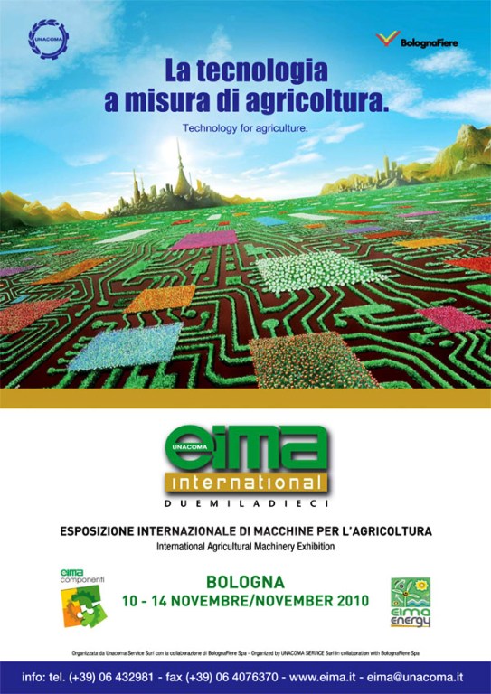 Dopo il successo del 2008, Eima International si presenta nel 2010 ancora più ricca, piena di novità e decisa a contribuire al rinnovamento della meccanizzazione agricola e delle imprese, dopo la grande crisi che ha colpito l’economia internazionale. La manifestazione, promossa da Unacoma (Unione Nazionale Costruttori Macchine Agricole) e organizzata da Unacoma Service Surl in collaborazione con BolognaFiere Spa, conta sulla presenza dell’intero universo delle aziende costruttrici, con la migliore produzione in tutti i settori merceologici.