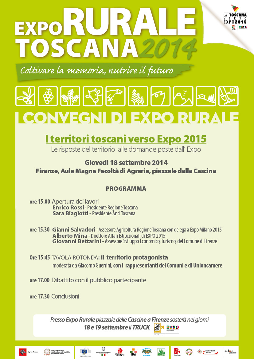 Programma del convegno " I territori toscani verso Expo 2015" che si terrà il prossimo 18 settembre dalle ore 15.00 a Firenze presso Expo Rurale 2014.