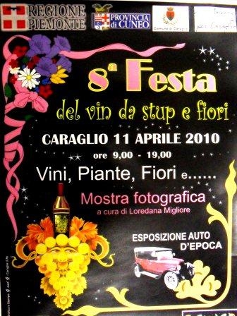 Domenica 11 aprile a Caraglio, in provincia di Cuneo, nella sua via principale si terrà l’ottava edizione della Festa del Vin da Stup e Fiori. In questa manifestazione si festeggerà il vino quotidiano e in particolar modo il vino Merola prodotto nella nostra zona da alcuni appassionati che mantengono ancora viva l’antica tradizione vitivinicola locale. Pensate che le cronache medioevale narrano che nel 1551 a Caraglio “si trova un homo aver ridotto (prodotto) dalla sua vigna cento carrate di vendemmia”. Ma questa manifestazione non ospiterà solo il vino del luogo e quello piemontese. Sarà anche il giorno dedicato alla Primavera con fiori e vivaismo orticolo, erbette di campagna, prodotti gastronomici e contadini e altro ancora, come una mostra fotografica e di macchine d’epoca. Allora perché non fare una capatina a Caraglio per vedere questa festa e l’armonia di questo paese situato all’ imbocco di una piccola valle alpina ancora incontaminata? Orario manifestazione 09-19.00 - ingresso gratuito