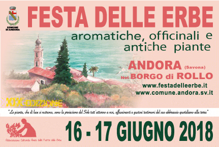 "FESTA DELLE ERBE AROMATICHE, OFFICINALI E ANTICHE PIANTE” XIX EDIZIONE 16 E 17 GIUGNO 2018 Borgo di Rollo – Comune di Andora (SV) – Liguria Rollo è un borgo semplice, ma splendido, capace di affascinare per il paesaggio, la natura, la quiete, il sole e il mare.