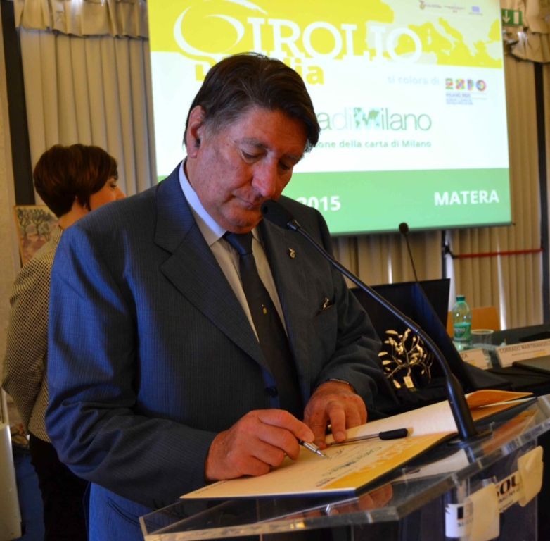Il Presidente di ANCO Enrico Lupi firma la Carta di Milano durante la prima tappa del Girolio d'Italia 2015 a Matera (1).jpg