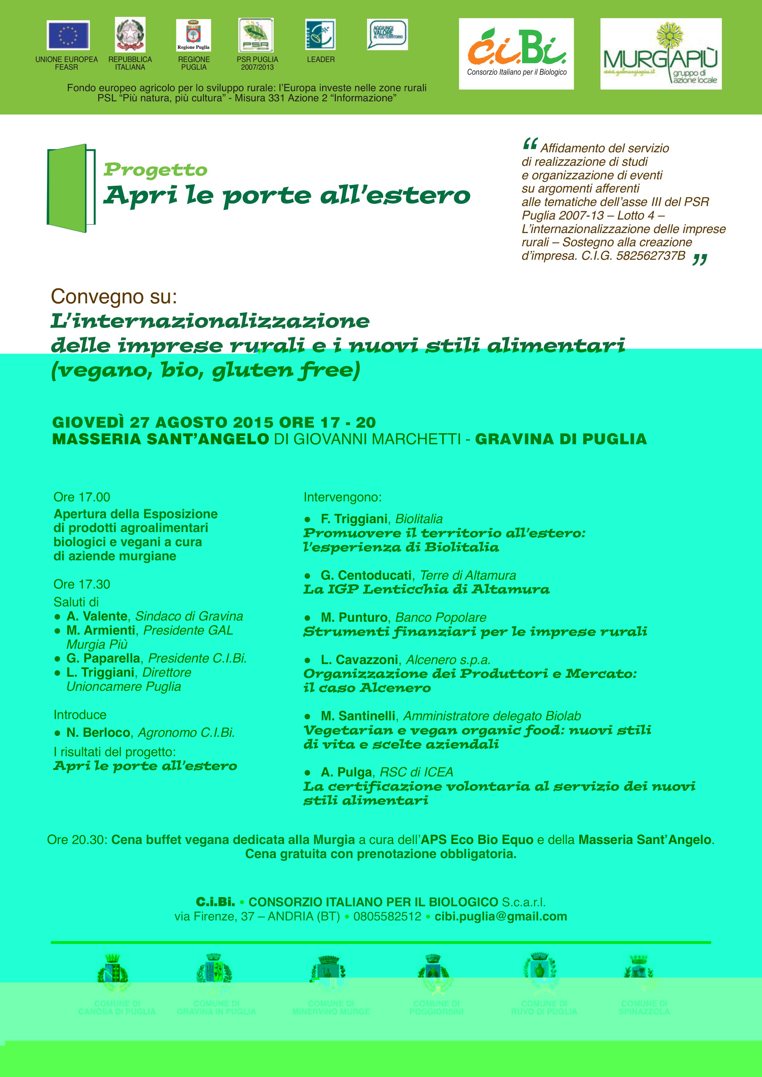 Convegno su: Internazionalizzazione delle imprese rurali e nuovi stili alimentari (vegano, bio, gluten free)