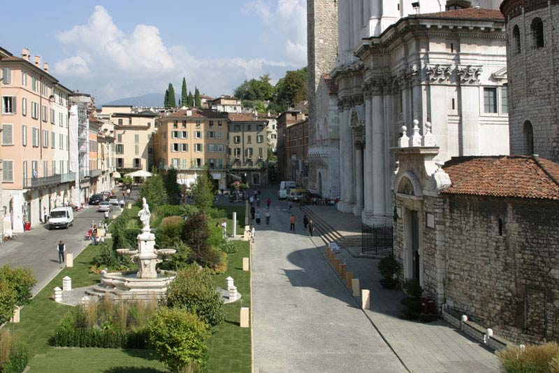 La storica Piazza del Duomo di Brescia vedrà nascere oltre 1200 metri quadrati di giardini verdi, offrendo al visitatore una visuale unica data dallo strano ma efficace binomio di elementi urbani e elementi naturali, geometrie e colori di portoni e palazzi a fare da scenografia agli splendidi giardini.