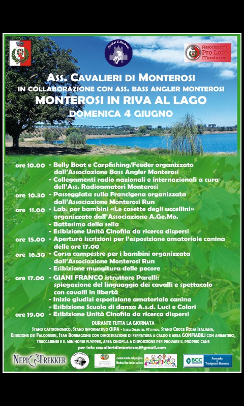 Lo scopo di questo evento è quello di promuovere e far conoscere il Lago di Monterosi (Viterbo) in quanto luogo di particolare rilevanza paesaggistica e naturalistica.
