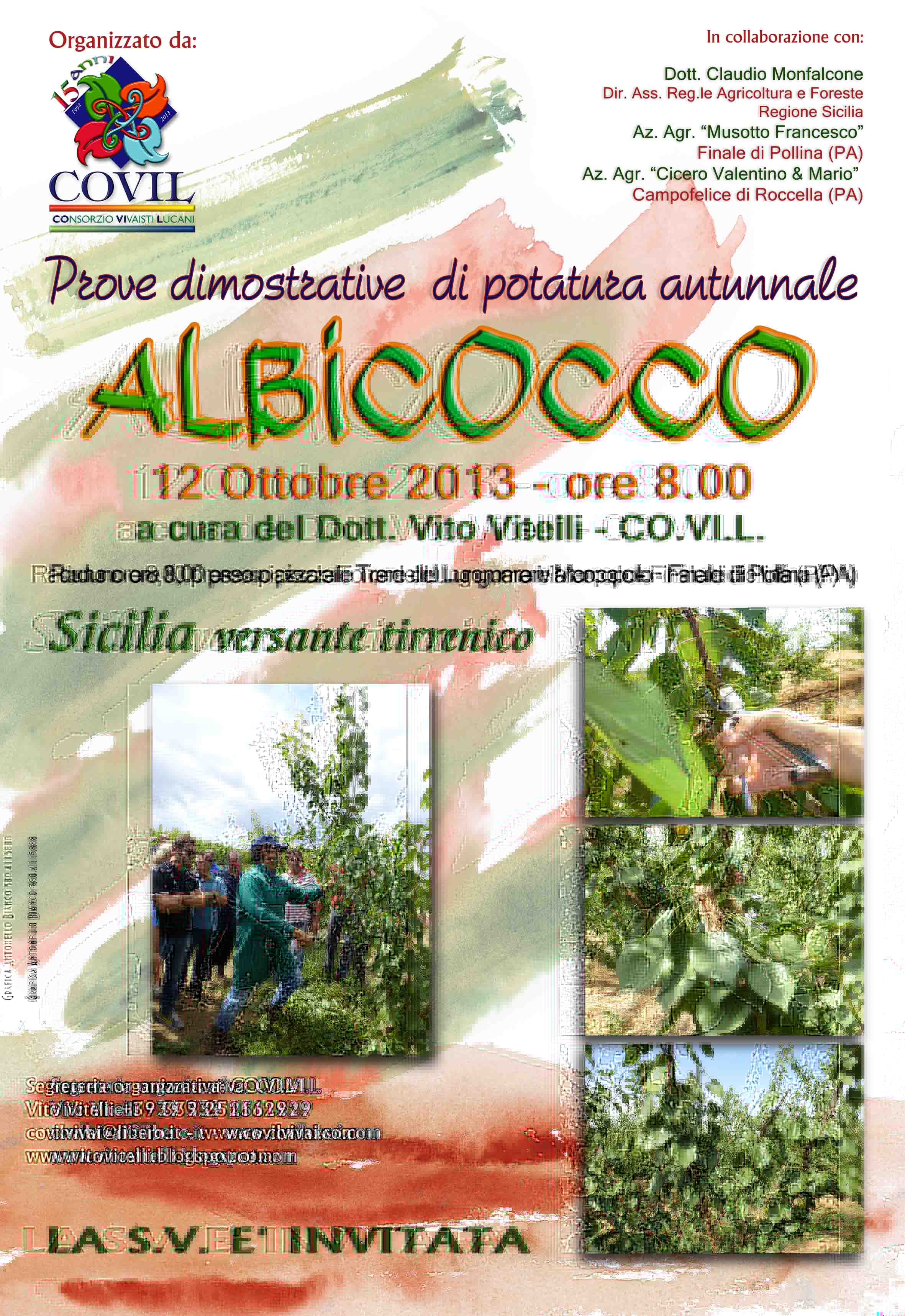 Il 12 ottobre 2013 in Sicilia, su impianti di diversa età, a cura del Dott. Vito Vitelli, del Consorzio Vivaisti Lucani, saranno condotte prove dimostrative ed esercitazioni pratiche di potatura autunnale dell’albicocco.