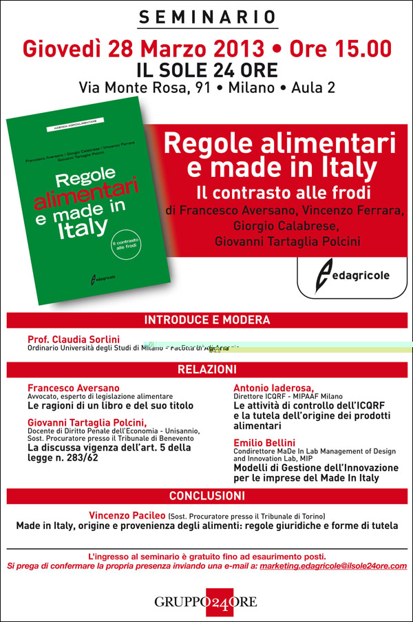 Regole alimentari e made in ITALY - 28.03 Milano