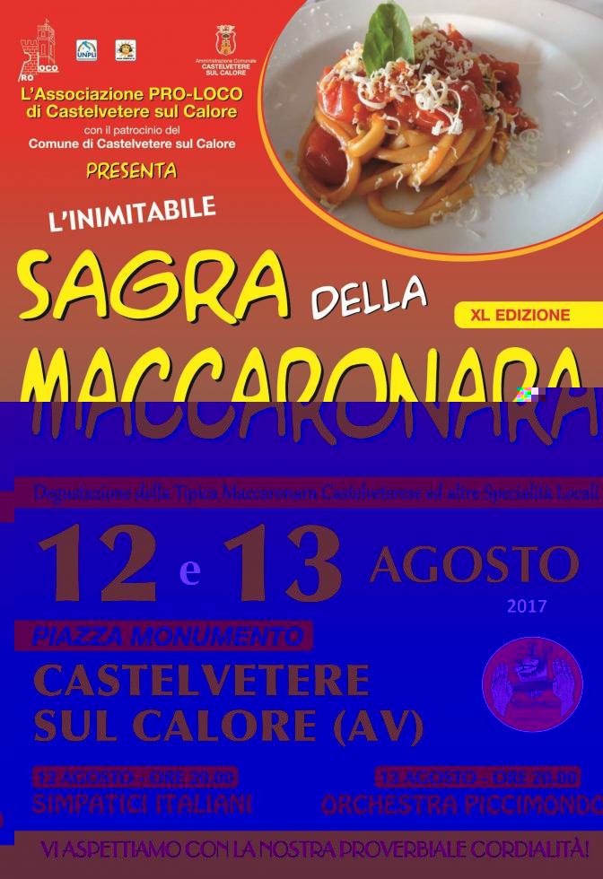 Fervono i preparativi per la quarantesima edizione della “Sagra della Maccaronara”, organizzata dalla Pro Loco di Castelvetere sul Calore (AV) non è solo una semplice festa, bensì un rituale tradizionale a cui i castelveteresi non possono sottrarsi, da vivere secondo lo spirito della condivisione dei valori antichi. Nei giorni 12 e 13 agosto, il piatto tipico locale, la rinomata Maccaronara, sarà celebrato in tutta la sua bontà accompagnato da musiche e balli d'altri tempi, rievocando l'atmosfera di una volta, quando la pasta veniva preparata dalle mani esperte delle massaie e il sugo si cuoceva per ore all'interno di grandi pentole di ceramica. Appuntamento fisso dell'estate irpina, la Sagra della Maccaronara, richiama ogni anno appassionati dei sapori tipici della provincia di Avellino, desiderosi di trascorrere indimenticabili momenti in uno degli scenari più suggestivi della verde Irpinia: il borgo di Castelvetere dominato dall’antico castello. Ma più di ogni altra cosa, i visitatori giungono numerosi attratti dal gusto e dalla genuinità dei prodotti tipici del luogo, sui quali regna incontrastata la Maccaronara. Questa gustosa bontà castelveterese, è un tipo di pasta fatta rigorosamente a mano, il cui impasto di acqua e farina si lavora fino a dargli una consistenza simile a quella di un grosso spaghetto. Condita con sugo o fagioli, viene preparata ancora dalle massaie locali secondo i metodi tradizionali tramandati per generazioni. Accanto alla Maccaronara e alle numerose altre prelibatezze della cucina e dell'enogastronomia locale, tra cui spiccano gli ottimi vini aglianico, grande spazio avrà il divertimento e l’animazione musicale, con musiche popolari e la tipica tarantella. Appuntamento dunque a Castelvetere sul Calore il 12 e 13 agosto per la quarantesima edizione della sagra dedicata ad una delle intramontabili bontà della Terra d’Irpinia.