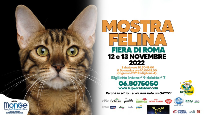 I gatti più belli del mondo, campioni, Best in Show, premi speciali, sfilate di bellezza, adozioni del cuore dell’Arca onlus. Main sponsor: Monge. Top sponsor: Schesir, Prolife, Natural Trainer, Royal Canin, Farmina, Oasy e Visàn