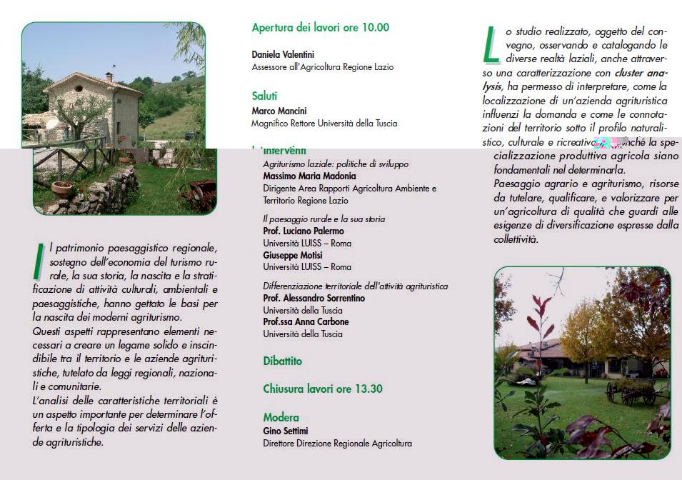 Seminario "Dal paesaggio rurale allo sviluppo dell'agriturismo nel Lazio" lunedì 8 febbraio 2010 alle ore 10.00 presso la sala Tirreno della Regione Lazio, in via Rosa Raimondi Garibaldi, 7.