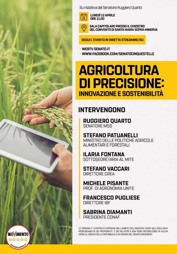 AGRICOLTURA, M5S: LUNEDÌ 12 ALLE ORE 11 WEBINAR “AGRICOLTURA DI PRECISIONE: INNOVAZIONE E SOSTENIBILITÀ”