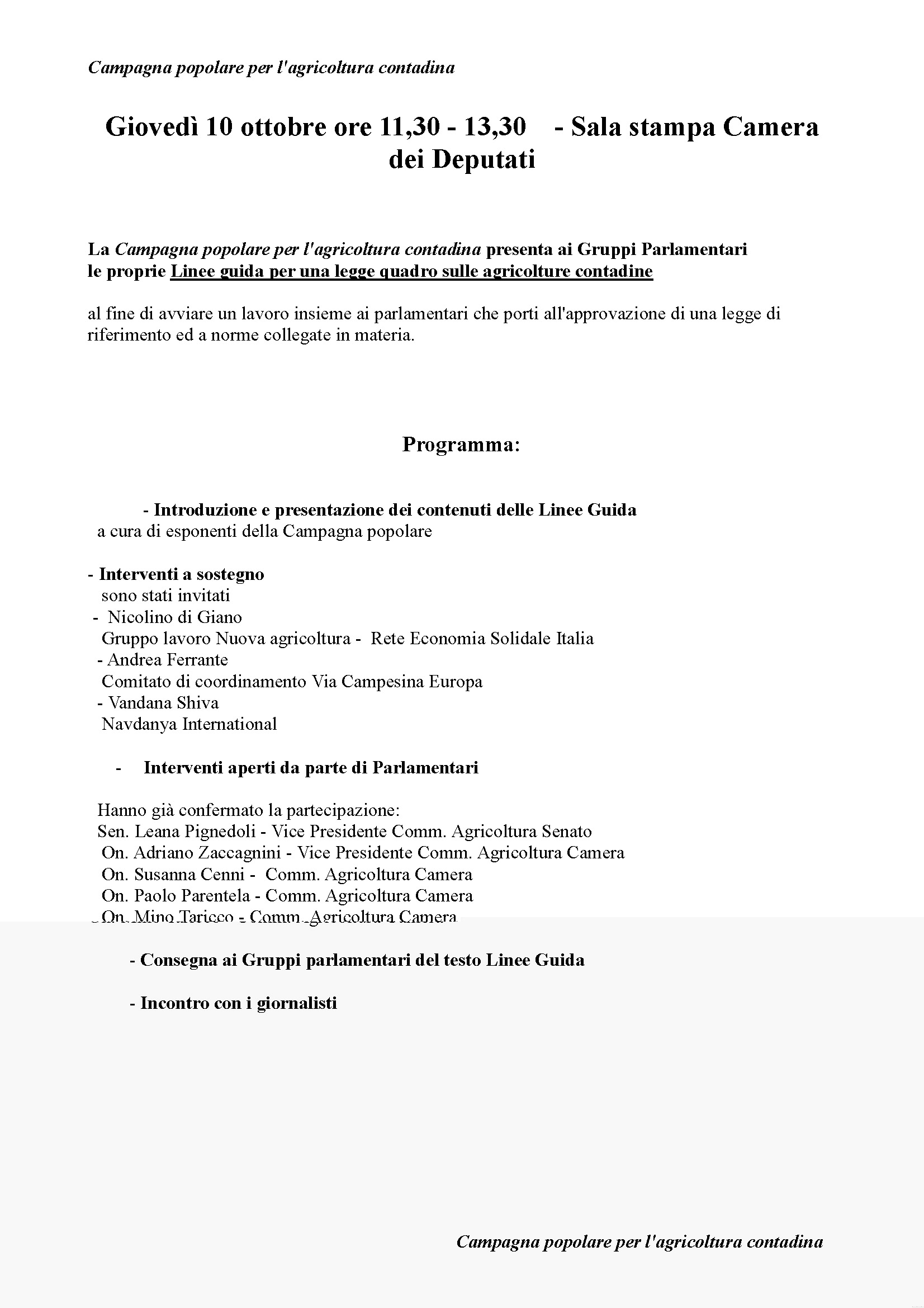 CAMPAGNA PER L'AGRICOLTURA CONTADINA - Incontro in Parlamento
