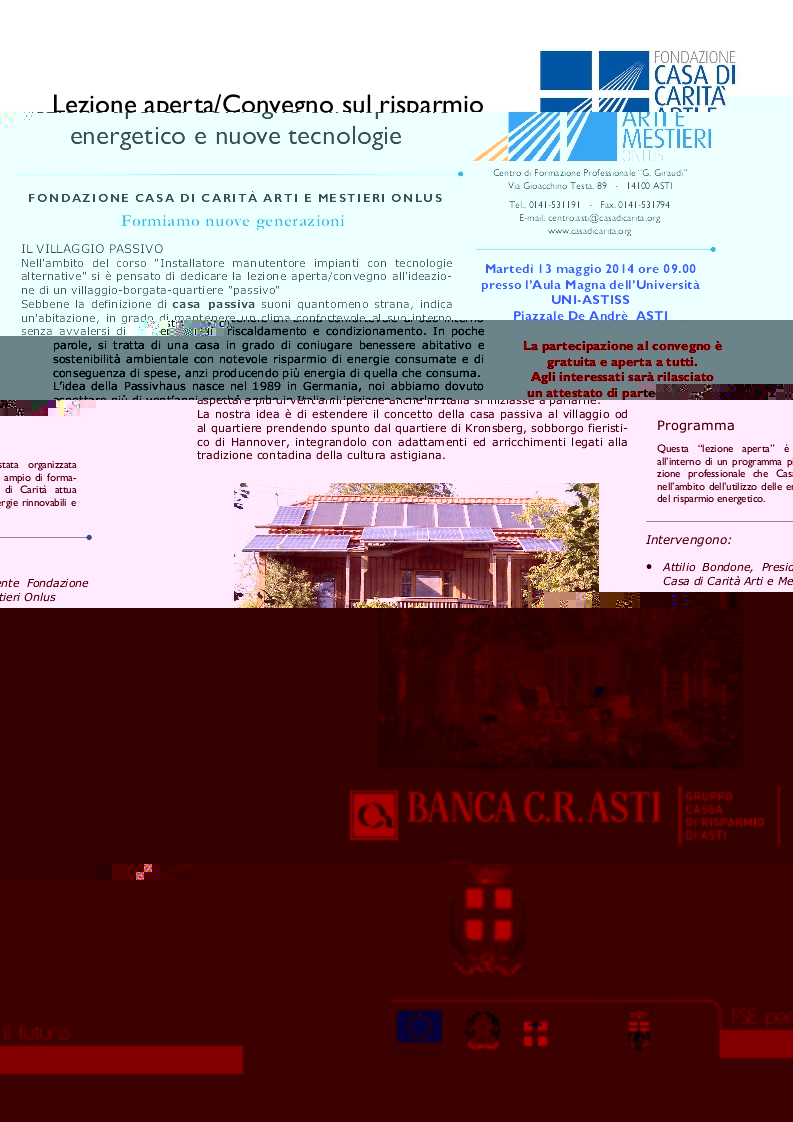 Lezione/Convegno sul Risparmio Energetico presso UNIASTISS - Asti 12 maggio 2014