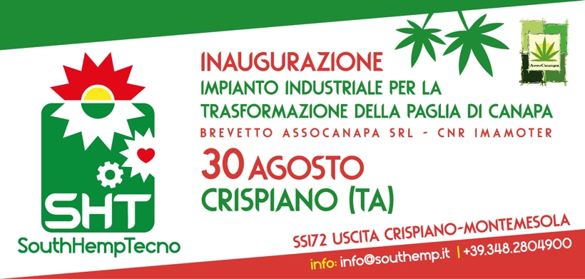 “Non c’è niente di più potente di un’idea il cui momento è ormai giunto”, scriveva Victor Hugo. Il momento dell'inagurazione dell'impianto industriale per la trasformazione della paglia di canapa South Hemp Tecno con tecnologia AssoCanapa srl e CNR IMAMOTER è finalmente arrivato. Vi Aspettiamo in Puglia a Crispiano (TA) il 30 Agosto !