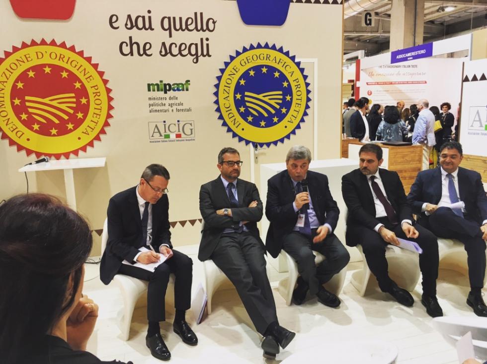 Promotore della tavola rotonda è il Mipaaf, intervenuto all'incontro con Luca Bianchi, Capo Dipartimento del Ministero delle Politiche Agricole Alimentari e Forestali che ha parlato della "necessità di un dialogo obbligatorio con la GDO: il mercato dei prodotti certificati ha un fatturato di 13,4 miliardi di euro, ovvero una fetta molto importante del fatturato complessivo dell'agroalimentare italiano, e lo sviluppo delle Indicazioni Geografiche assume dunque una rilevanza strategica per le prospettive di crescita". E con il Direttore Generale Emilio Gatto, il quale ha sottolineato come "per la valorizzazione dei prodotti ad Indicazione Geografica il rapporto con la GDO sia un passaggio strategico, di primaria importanza affinché possa verificarsi un incremento dei volumi commercializzati e quindi ritorni sul reddito dei produttori. Il Mipaaf sta lavorando e investendo molto sul dialogo tra i consorzi di tutela e la GDO: l'apertura di tavoli di confronto come quello di oggi è stato già anticipato nei mesi scorsi da una campagna promozionale del Mipaaf attraverso Tv, radio e social media, per favorire nei consumatori la conoscenza della qualità dei prodotti IG. E' vero che esistono già spazi per i prodotti a Indicazione Geografica nei punti vendita, ma oltre che valorizzare quelli già molto conosciuti dobbiamo aiutare quelli che celano potenzialità ancora parzialmente inespresse a trovare ulteriori sbocchi commerciali, con una strategia mirata allo sviluppo nel tempo dei singoli prodotti più che alla generalità".