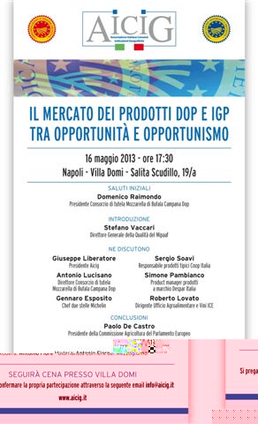 IL MERCATO DEI PRODOTTI DOP E IGP TRA OPPORTUNITA' E OPPORTUNISMO GIOVEDI' 16 MAGGIO A NAPOLI L'ASSEMBLEA NAZIONALE DI AICIG