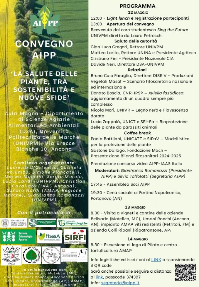 Il 12 maggio è la Giornata Mondiale della Salute delle Piante L’AIPP la celebra ad Ancona con il convegno “La salute delle piante, tra sostenibilità e nuove sfide” Dal 2020, il 12 maggio si celebra la Giornata Internazionale della Salute delle Piante (International Day of Plant Health, IPDH), volta a sensibilizzare l’importanza della cura delle piante per l’alimentazione, l’ambiente e la nostra stessa salute. In occasione della Giornata, l'Associazione Italiana per la Protezione delle Piante (AIPP) organizza il convegno “La salute delle piante, tra sostenibilità e nuove sfide”, nel quale esperti di livello nazionale aggiorneranno la platea sulle principali problematiche che affliggono le nostre piante, partendo dagli aggiornamenti normativi, per poi toccare importanti patogeni da quarantena, quali Xylella fastidiosa e Flavescenza dorata, e proseguire con la gestione dei fitofagi e l’importanza della modellistica nella protezione delle piante. Verranno inoltre presentati i Bilanci fitosanitari 2024-2025, iniziativa che offre l’opportunità per Regioni e Province autonome di fare il punto della situazione sulle criticità nella gestione delle avversità nell’ultimo biennio e sulle strategie di controllo adottate. Il convegno si chiuderà con la premiazione dei 5 vincitori del concorso AIPP-IAAS Italia “La protezione delle piante in un minuto” per la realizzazione di brevi video. Gli autori dei video vincitori presenteranno direttamente i loro lavori che saranno, inoltre, commentati da esperti della comunicazione. I 19 video pervenuti sono disponibili per la visualizzazione, la condivisione ed eventuali commenti sui canali social AIPP (Facebook, Twitter, Instagram, LinkedIn, YouTube), e la popolarità sui canali social contribuirà per la metà alla valutazione finale. Il convegno si concluderà con la cena al Fortino Napoleonico e le visite tecniche dei giorni successivi a vigneti e cantine di eccellenza, con degustazione di vini e prodotti locali, nonché a posti unici quali il Lago di Pilato, con successiva visita al centro di tartuficoltura e l’immancabile assaggio di specialità al tartufo. Chi volesse partecipare trova il programma dettagliato, con form di iscrizione, al link https://aipp.it/convegno-aipp-2025-la-s ... ove-sfide/. Chi non riuscisse a partecipare in presenza potrà seguire il convegno a distanza al link https://us06web.zoom.us/meeting/registe ... Oj6Iu61GDw, passcode 374397. L’iniziativa ha il patrocinio di Università Politecnica delle Marche, ARPTRA, FISSSA, Giornate Fitopatologiche, IAAS Italia, SEI-Ea, SOI, SIPaV, SIRFI e CONAF, che ha accreditato il convegno tra gli eventi formativi.
