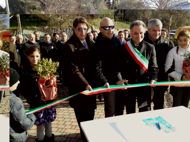 La grande festa finale a Tenno è andata in scena alla presenza delle autorità cittadine, del Presidente dell'Associazione Nazionale Città dell'Olio e del testimonial di tappa, l'ex campione di rally Renato Travaglia che dopo l'alzabandiera e l'inno nazionale intonato dal Coro Lago di Tenno, hanno tagliato il nastro sorretto dai bambini della scuola locale che hanno ricevuto dalla delegazione di Pescara una piantina della cultivar tipica abruzzese (foto 1).