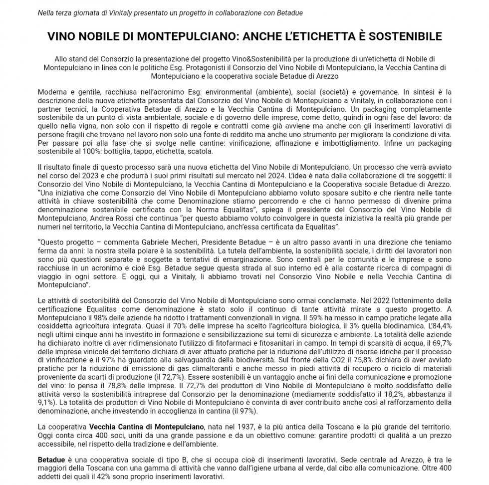 Dal 2022 quella del Vino Nobile di Montepulciano è la prima denominazione italiana ad aver raggiunto la certificazione di sostenibilità secondo la norma Equalitas. Per arrivare a questo risultato, che è solo un tassello di un percorso in divenire, si sono impegnate gran parte delle imprese vinicole del territorio. Il 75,8% delle aziende di Montepulciano, per l’esattezza, ha contribuito con le proprie attività al raggiungimento della certificazione. Quale sia stato il modo in cui ciascuna cantina ha contribuito a farlo, ha cercato di scoprirlo il Consorzio del Vino Nobile di Montepulciano che, proprio in occasione dell’Anteprima, ha chiesto ai propri associati con quali attività abbiano privilegiato questo obiettivo. «Essere una denominazione sostenibile è un impegno non solo rivolto al territorio, ma anche alle persone che lo abitano – spiega il Presidente del Consorzio del Vino Nobile di Montepulciano, Andrea Rossi – come Consorzio non abbiamo solo guardato alle attività agronomiche e produttive, ma anche alla divulgazione di queste nei confronti dei cittadini di Montepulciano, dei tanti turisti che ospitiamo durante l’anno e anche dei più piccoli con attività didattiche in collaborazione con le scuole e con l’Anteprima di quest’anno, la prima da quando siamo certificati, abbiamo voluto spiegare meglio quanto sia fondamentale il lavoro di ogni singola impresa vinicola».