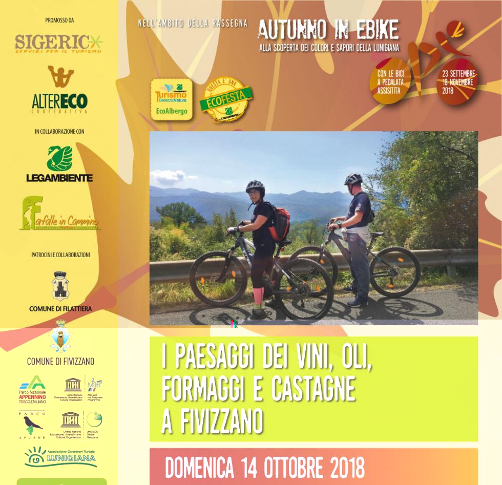 Prosegue la Rassegna Autunno in Ebike in Lunigiana Domenica 14 ottobre, sarà la volta del Tour ‘I Paesaggi dei vini, oli, formaggi e castagne a Fivizzano’