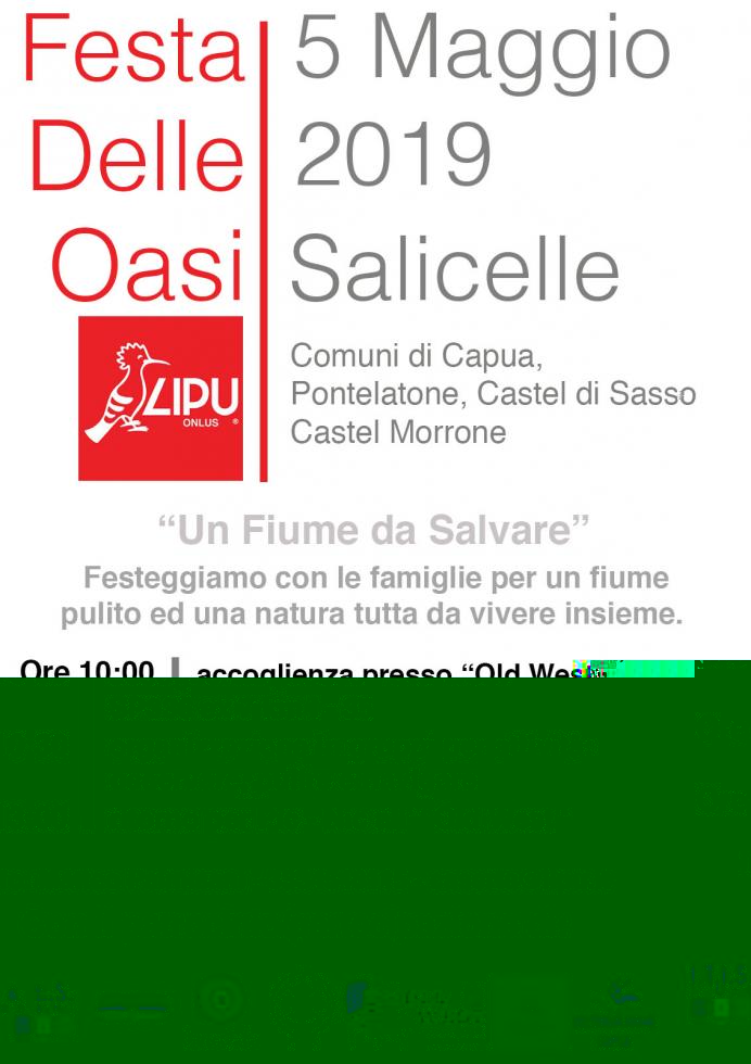 5 MAGGIO 2019 Festa delle Oasi Lipu Oasi Salicelle - Capua ore 10:00 Centro Ippico “Old West” SP 336 ex 7 Appia km I - 35 nei pressi del Palamaggiò
