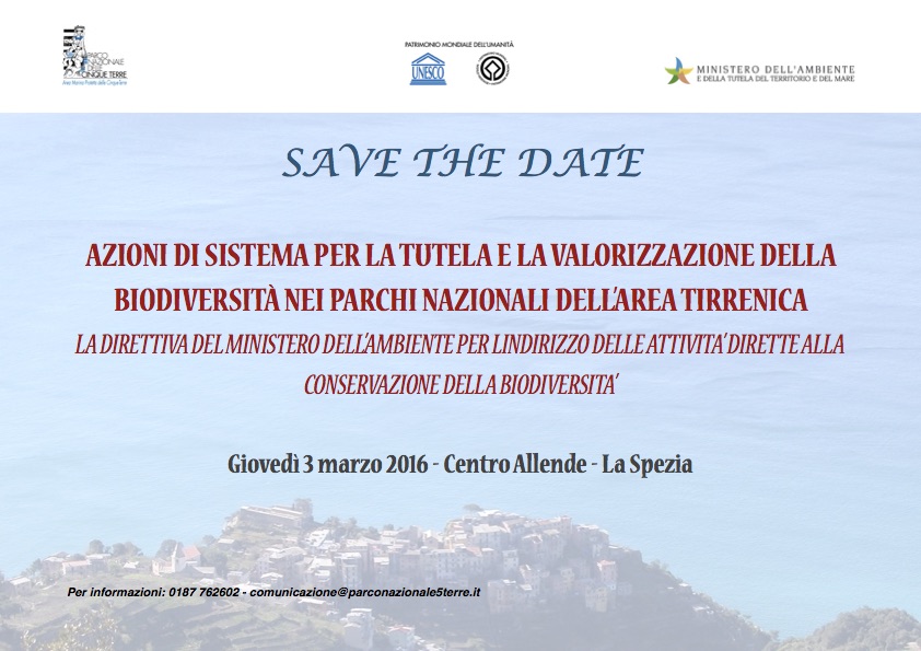 (ANSA , 04 Marzo 2016) - Un percorso dedicato al turismo lento e sostenibile per le Cinque Terre è stato proposto alla Spezia nel corso del convegno dedicato alla tutela e alla valorizzazione della biodiversità nei parchi nazionali dell'area tirrenica. La proposta mira a creare una sorta di percorso verde, sopra e sotto il mare, che coinvolga territori protetti di qualità lungo la direttrice tirrenica. Dal Parco Nazionale delle Cinque Terre agli arcipelaghi della Maddalena e Toscano, sino all'area del Circeo.